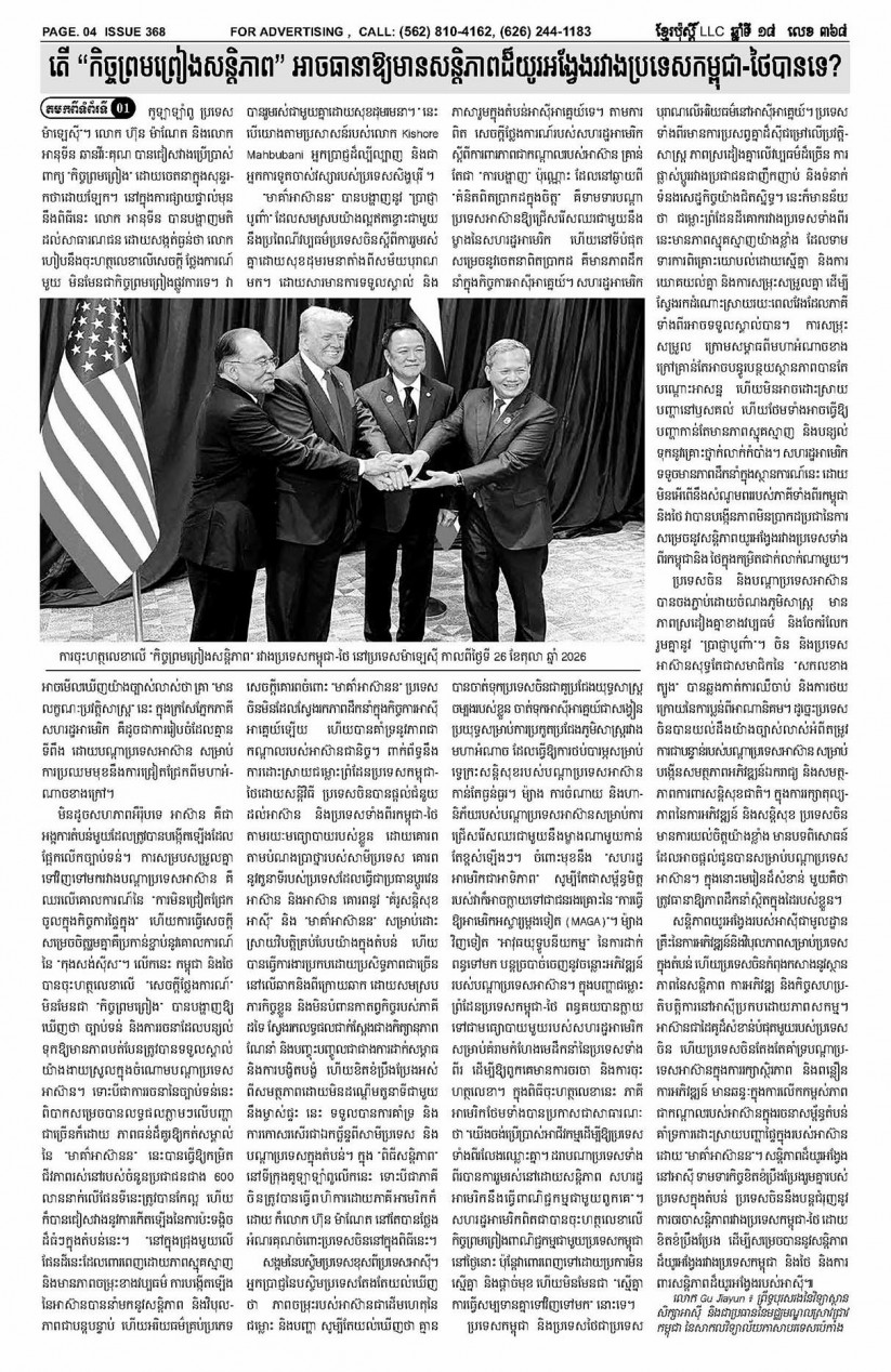 ការផ្សាយពាណិជ្ជកម្មនៅលើកាសែត ឬនៅលើវេបសាយ Khmer Post នឹងធ្វើឲ្យមុខជំនួញរបស់លោកអ្នកទទួលបានជោគជ័យ និង ភាពរីកចម្រើន !