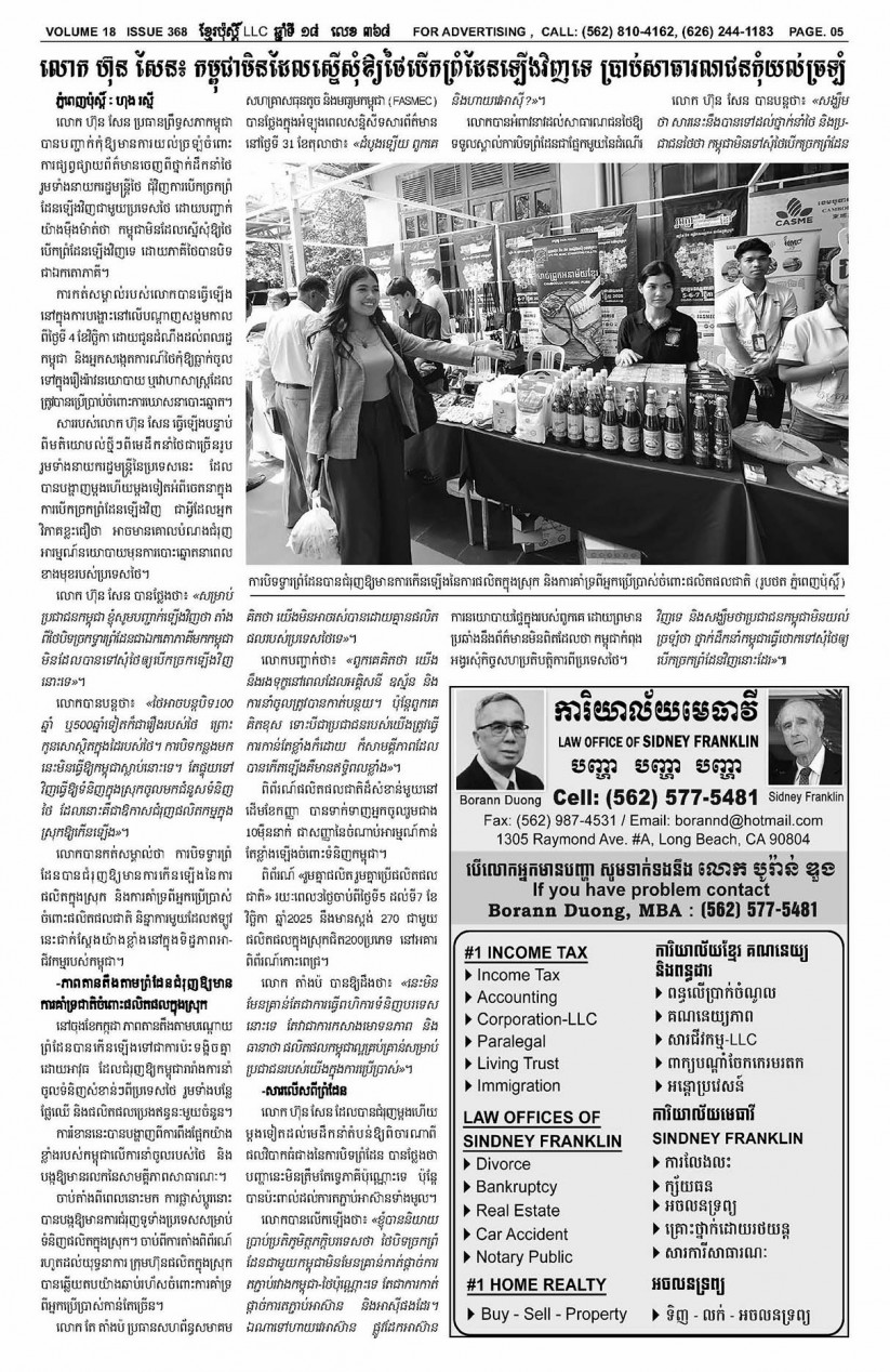 បើមានចំណាប់អារម្មណ៍ សូមធ្វើការទំនាក់ទំនងតាមរយៈ : P.O Box 4073, Long Beach CA 90804, 4Tel: (562) 810-4162 Jamie Meach / (626) 244-1183 Dara Long 4Email: info@thekhmerposts.com or jamiemeach09@gmail.com, 4 Web site: www.thekhmerposts.com