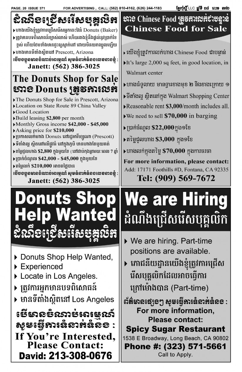 បើមានចំណាប់អារម្មណ៍ សូមធ្វើការទំនាក់ទំនងតាមរយៈ :  P.O Box 4073, Long Beach CA 90804, 4Tel: (562) 810-4162 Jamie Meach / (626) 244-1183 Dara Long 4Email: info@thekhmerposts.com or jamiemeach09@gmail.com, 4 Web site: www.thekhmerposts.com