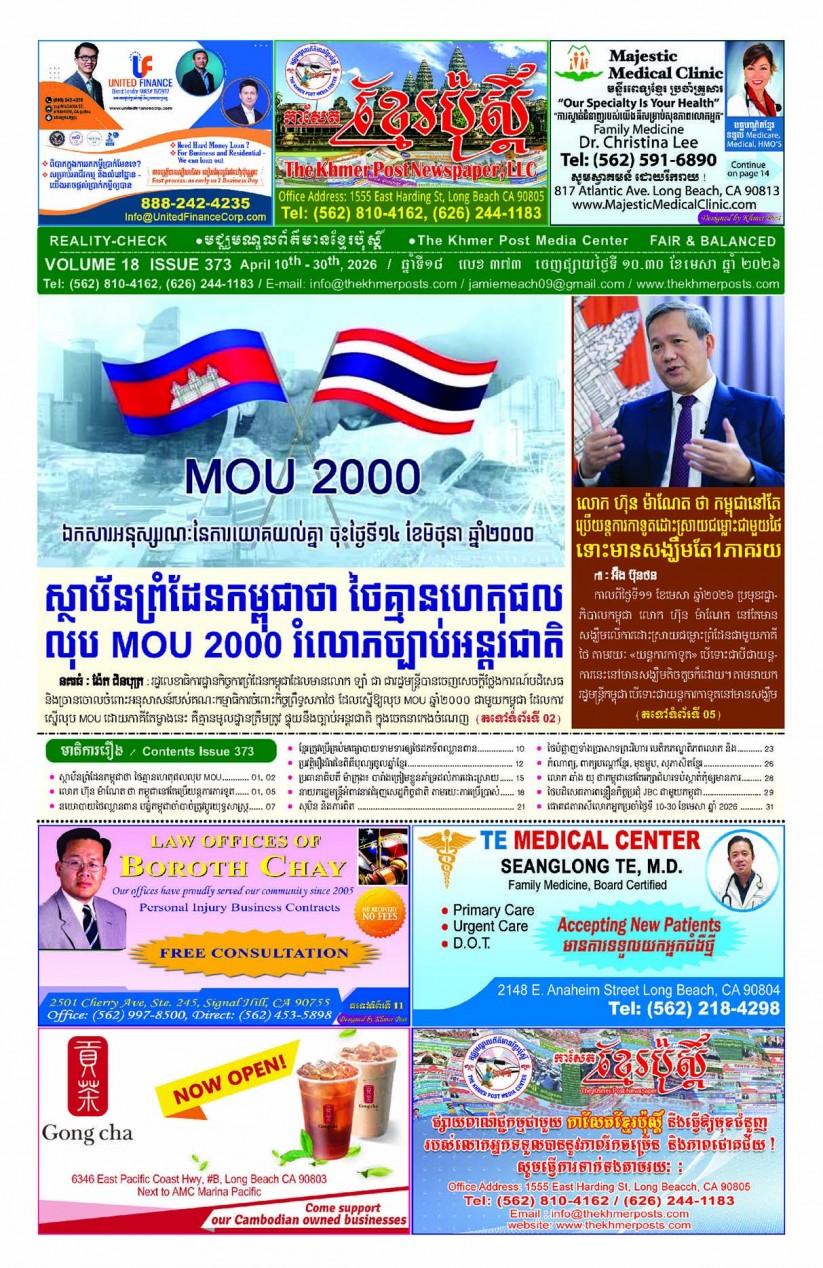 បើមានចំណាប់អារម្មណ៍ សូមធ្វើការទំនាក់ទំនងតាមរយៈ :  P.O Box 4073, Long Beach CA 90804, 4Tel: (562) 810-4162 Jamie Meach / (626) 244-1183 Dara Long 4Email: info@thekhmerposts.com or jamiemeach09@gmail.com, 4 Web site: www.thekhmerposts.com