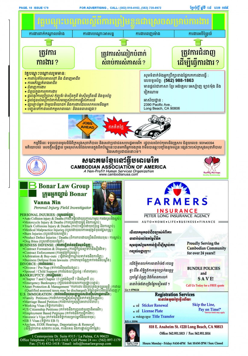បើមានចំណាប់អារម្មណ៍ សូមធ្វើការទំនាក់ទំនងតាមរយៈ : P.O Box 4073, Long Beach CA 90804, 4Tel: (562) 810-4162 Jamie Meach / (626) 244-1183 Dara Long 4Email: info@thekhmerposts.com or jamiemeach09@gmail.com, 4 Web site: www.thekhmerposts.com