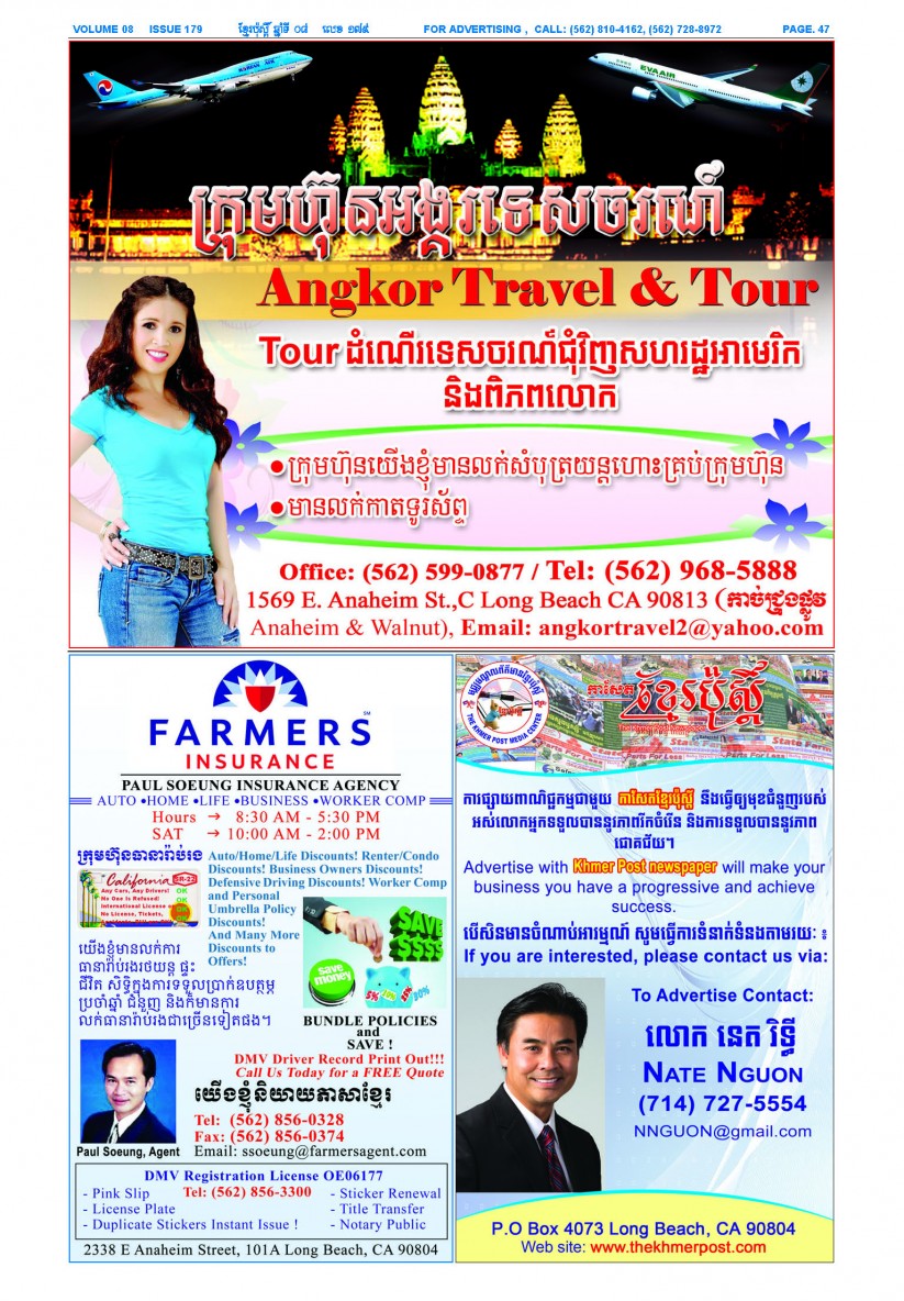 បើមានចំណាប់អារម្មណ៍ សូមធ្វើការទំនាក់ទំនងតាមរយៈ : P.O Box 4073, Long Beach CA 90804, 4Tel: (562) 810-4162 Jamie Meach / (626) 244-1183 Dara Long 4Email: info@thekhmerposts.com or jamiemeach09@gmail.com, 4 Web site: www.thekhmerposts.com