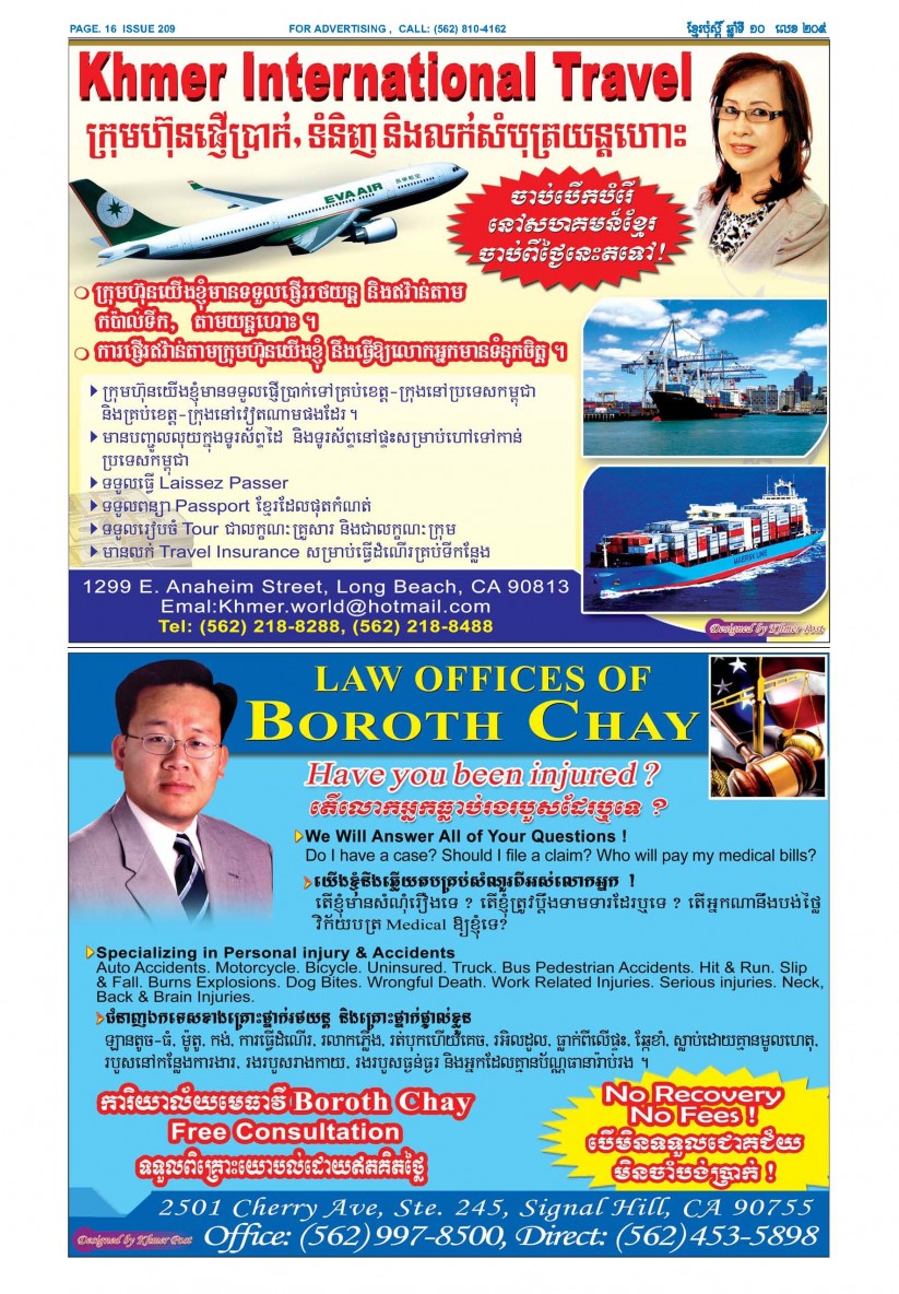 បើមានចំណាប់អារម្មណ៍ សូមធ្វើការទំនាក់ទំនងតាមរយៈ :  P.O Box 4073, Long Beach CA 90804, 4Tel: (562) 810-4162 Jamie Meach / (626) 244-1183 Dara Long 4Email: info@thekhmerposts.com or jamiemeach09@gmail.com, 4 Web site: www.thekhmerposts.com