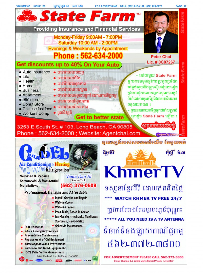 បើមានចំណាប់អារម្មណ៍ សូមធ្វើការទំនាក់ទំនងតាមរយៈ : P.O Box 4073, Long Beach CA 90804, 4Tel: (562) 810-4162 Jamie Meach / (626) 244-1183 Dara Long 4Email: info@thekhmerposts.com or jamiemeach09@gmail.com, 4 Web site: www.thekhmerposts.com