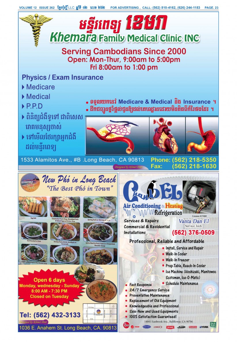 បើមានចំណាប់អារម្មណ៍ សូមធ្វើការទំនាក់ទំនងតាមរយៈ : P.O Box 4073, Long Beach CA 90804, 4Tel: (562) 810-4162 Jamie Meach / (626) 244-1183 Dara Long 4Email: info@thekhmerposts.com or jamiemeach09@gmail.com, 4 Web site: www.thekhmerposts.com