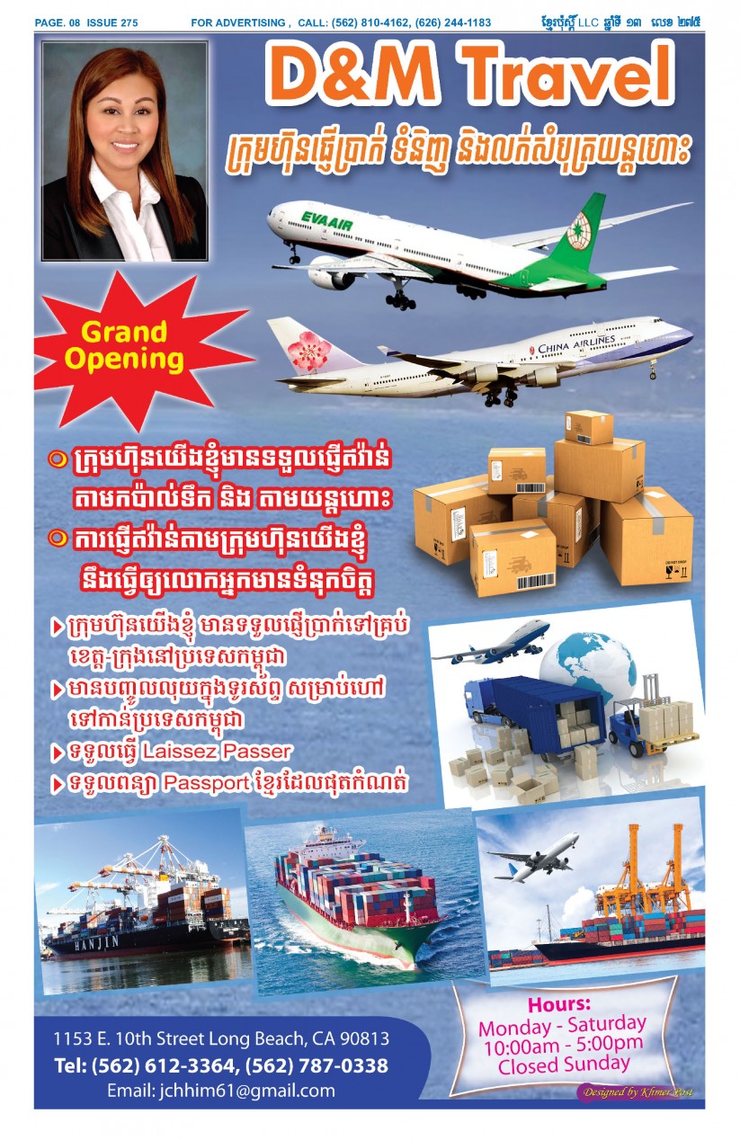 បើមានចំណាប់អារម្មណ៍ សូមធ្វើការទំនាក់ទំនងតាមរយៈ :  P.O Box 4073, Long Beach CA 90804, 4Tel: (562) 810-4162 Jamie Meach / (626) 244-1183 Dara Long 4Email: info@thekhmerposts.com or jamiemeach09@gmail.com, 4 Web site: www.thekhmerposts.com