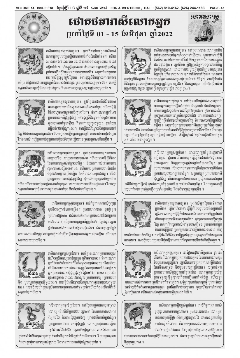 បើមានចំណាប់អារម្មណ៍ សូមធ្វើការទំនាក់ទំនងតាមរយៈ : P.O Box 4073, Long Beach CA 90804, 4Tel: (562) 810-4162 Jamie Meach / (626) 244-1183 Dara Long 4Email: info@thekhmerposts.com or jamiemeach09@gmail.com, 4 Web site: www.thekhmerposts.com
