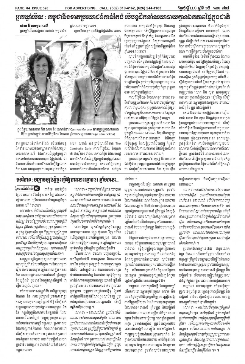 បើមានចំណាប់អារម្មណ៍ សូមធ្វើការទំនាក់ទំនងតាមរយៈ :  P.O Box 4073, Long Beach CA 90804, 4Tel: (562) 810-4162 Jamie Meach / (626) 244-1183 Dara Long 4Email: info@thekhmerposts.com or jamiemeach09@gmail.com, 4 Web site: www.thekhmerposts.com